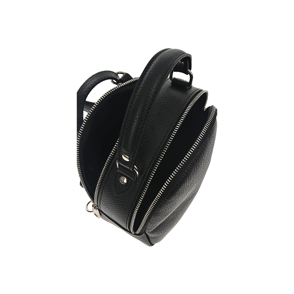 Outer: 100% LeatherOne top handleZip closureOne interior pocket with zipTwo compartmentsAdjustable shoulder strap