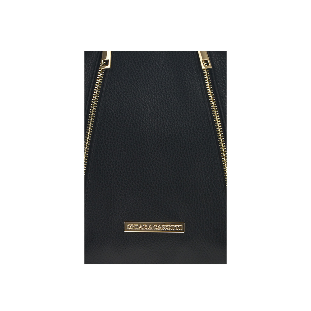 100% leatherOne exterior pocketTwo interior pockets, one with zip closureTwo detachable shoulder strapsOne fixed top handleZip closure