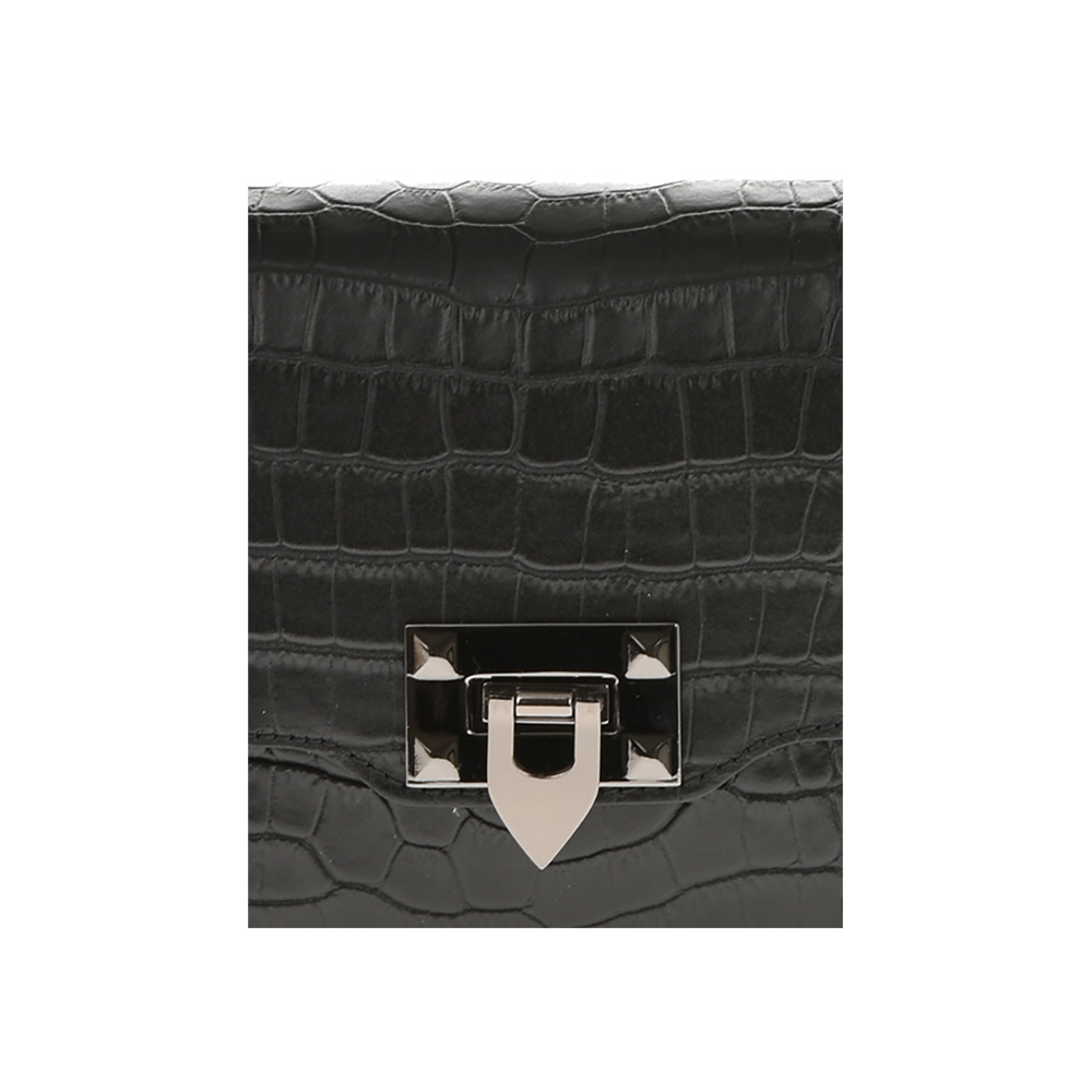 Outer: 100% LeatherOne top handleMetallic and zip closureOne interior pocket with zipDetachable shoulder chain strap